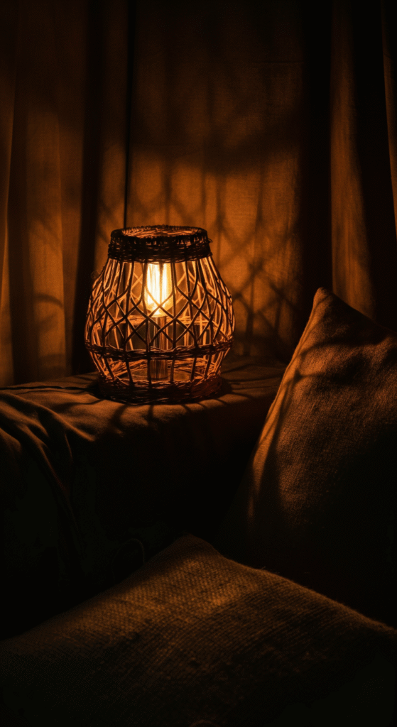 Wicker baskets are another great way to add rustic texture and charm to your living room lighting. A wicker lamp, whether it’s a table lamp or a pendant light, brings a cozy, lived-in feel to the space. The weaving pattern creates interesting shadows and depth as the light filters through.