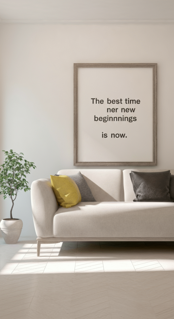 Imagine waking up in a room where a quote like, “The best time for new beginnings is now,” is framed on the wall, setting the tone for a productive day.