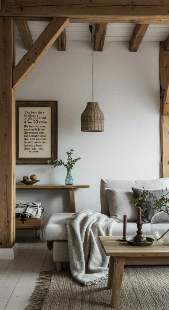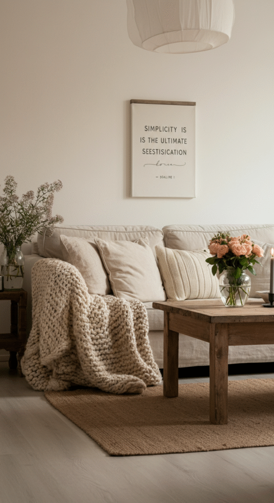 Quotes add personality and meaning to a Scandi living room, blending seamlessly with minimalist design while adding emotional depth, warmth, and inspiration.
