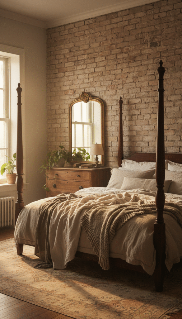 In vintage bedroom aesthetics, brick should look aged rather than industrial, with soft, worn edges and natural color variation.