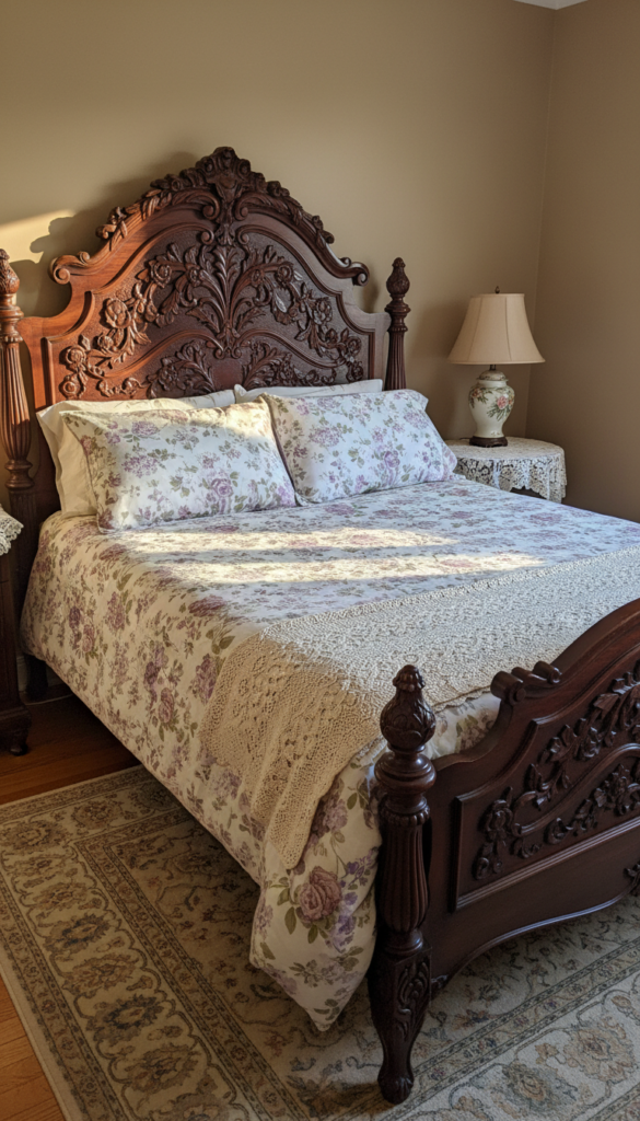 3. Vintage Bed with a Carved Headboard