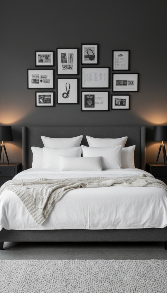 - Create a gallery wall above your headboard or dresser.