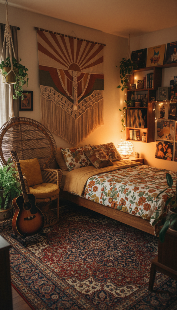Think Stevie Nicks meets Laurel Canyon. This aesthetic is all about texture, warmth, and a laid-back atmosphere. It uses soft fabrics and natural materials to create a cozy, acoustic feeling.