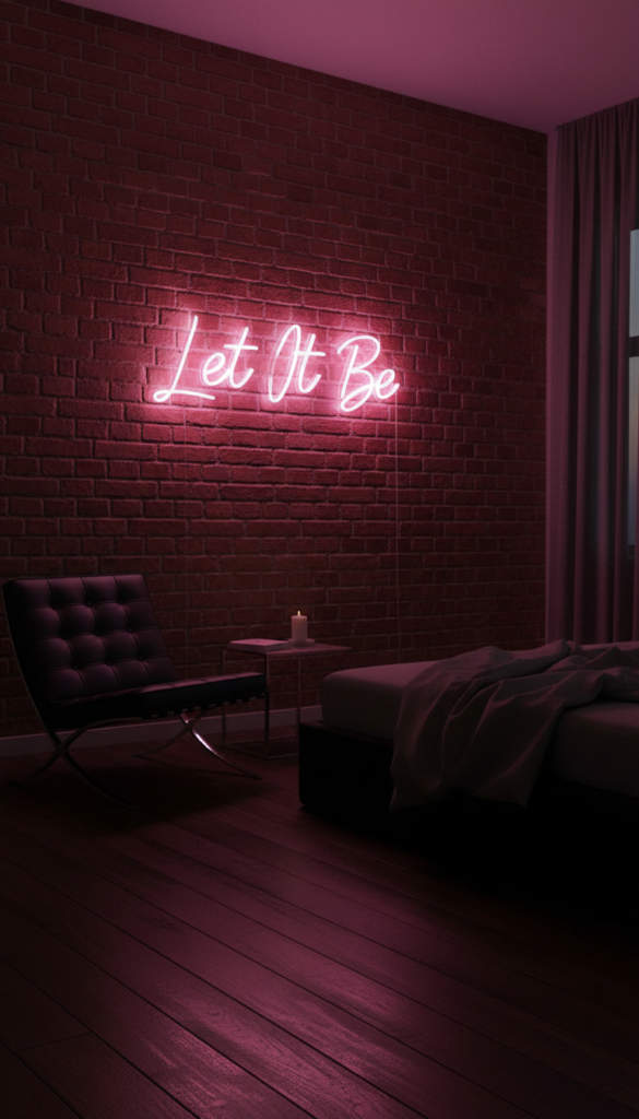 Nothing sets a mood quite like neon. Choose a lyric from your favorite vintage track and have it immortalized in glowing glass. It adds an edgy, dive-bar energy to the room that looks incredible at night.