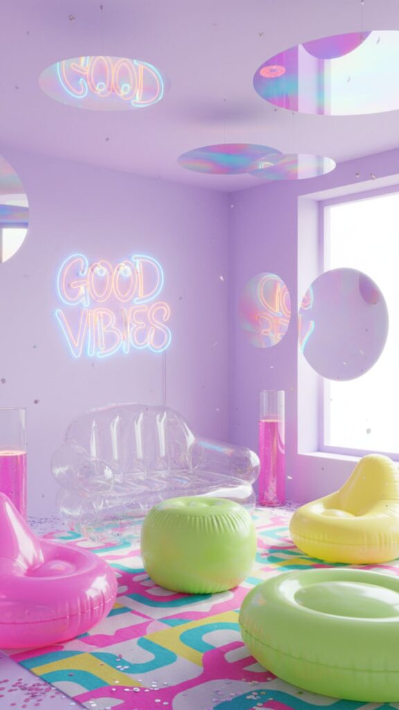 Absolutely. Y2K blends well with “Danish Pastel” (for a softer look) or “Maximalism” (for a bolder look). You can also add Y2K accents to a modern room for a touch of retro flair without overwhelming the space.