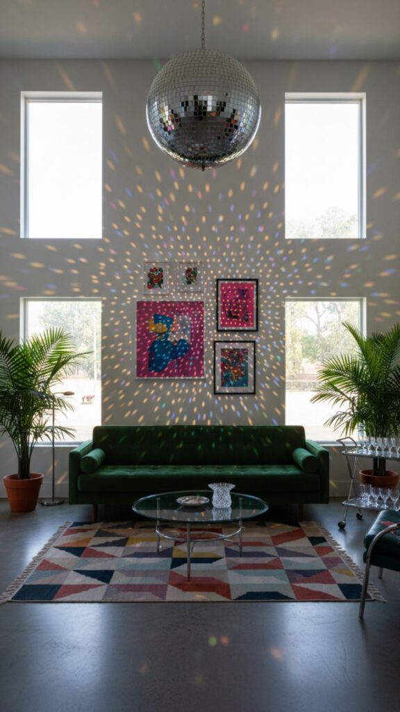 A disco ball isn’t just for parties; it’s a permanent fixture in the Y2K bedroom. It catches sunlight during the day and scatters sparkles across the walls, adding that necessary “extra” flair.