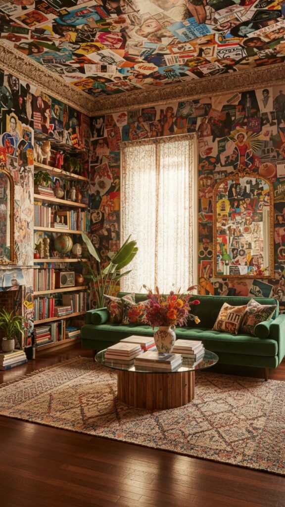 • Create a floor-to-ceiling collage using images of pop icons, fashion editorials, and quotes.