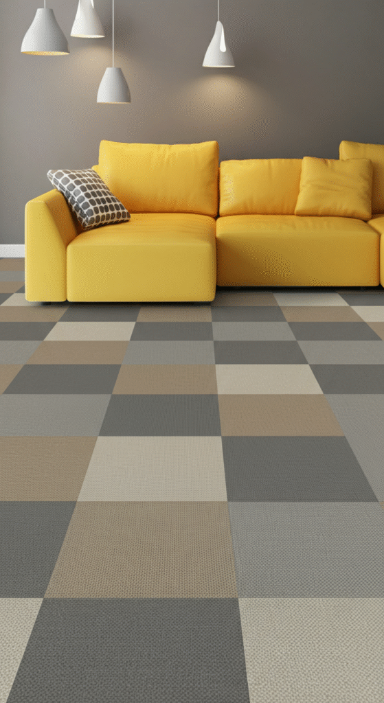 Rubber flooring comes in a variety of colors and textures, making it easy to blend into your living room’s design. It’s slip-resistant, noise-reducing, and incredibly soft underfoot, offering both comfort and durability.