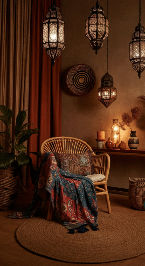 One of the hallmarks of Bohemian style is its cultural diversity. Mix items from various cultures to create a truly unique living room. Think Moroccan lanterns, Indian throw blankets, and African baskets. The beauty lies in how these different elements come together in perfect harmony.