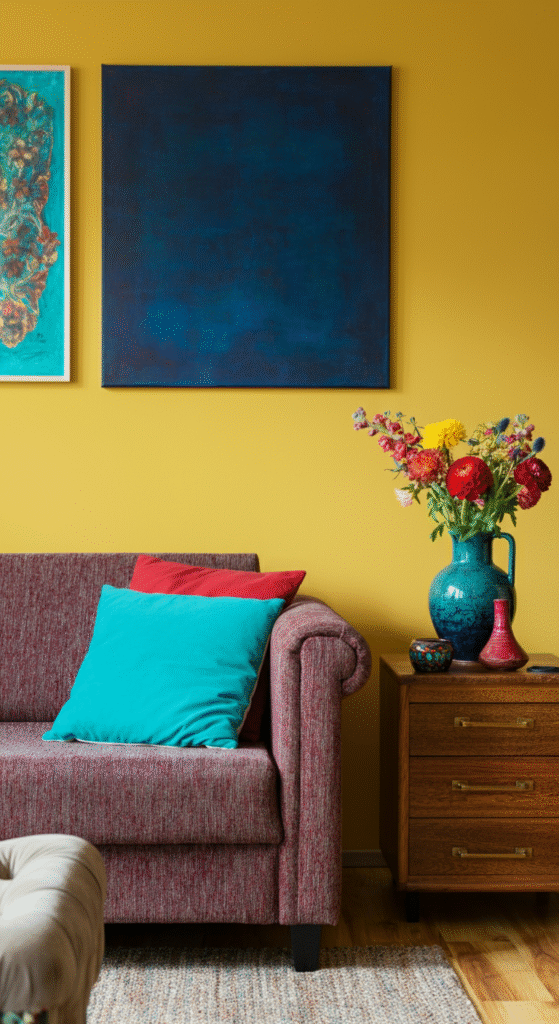 Bohemian spaces are known for their rich color palettes. While neutrals are commonly used, don’t shy away from adding pops of bold colors like mustard yellow, deep reds, or vibrant blues. These colors create an energetic and lively atmosphere.