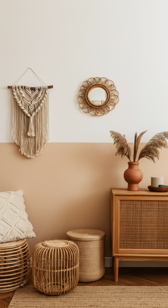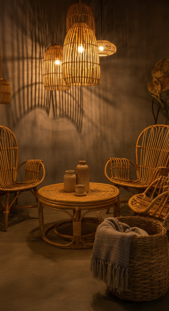Rattan and wicker are staples in Bohemian design. These natural materials add texture and a touch of vintage charm. Incorporate wicker chairs, rattan lampshades, or woven baskets to create a natural, earthy vibe in your space.