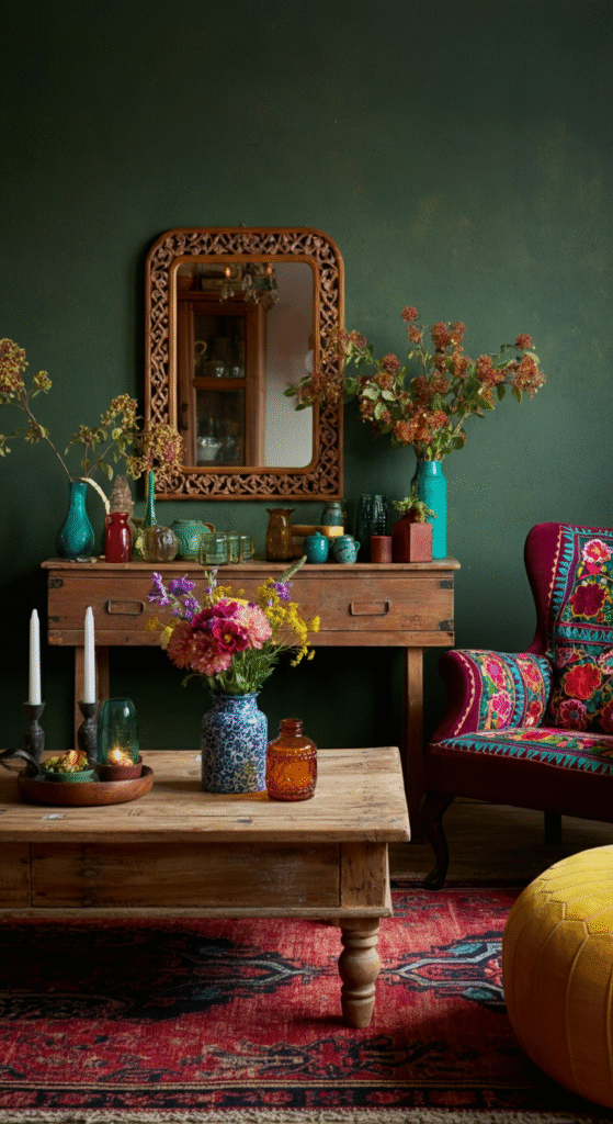 These pieces tell a story and contribute to the overall eclectic vibe of the room.