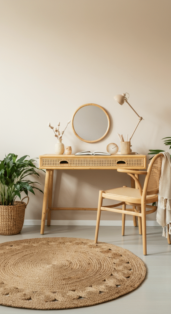 1. Rattan Desk Setup for a Natural Warmth