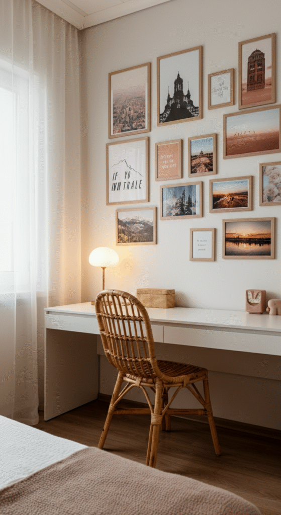 11. Artistic Gallery Wall Above the Desk