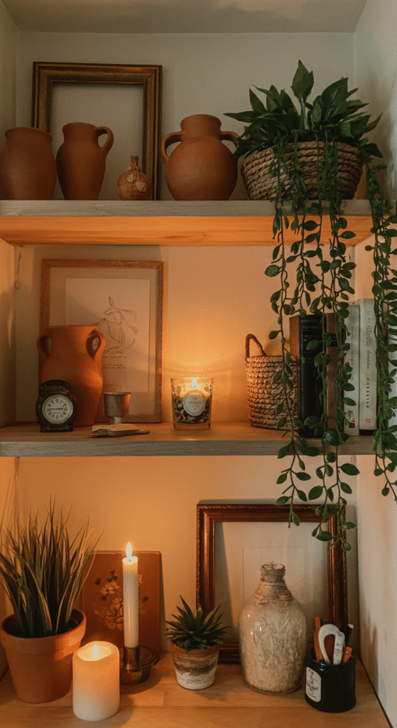 4. Open Shelf Decor With Handcrafted Pieces