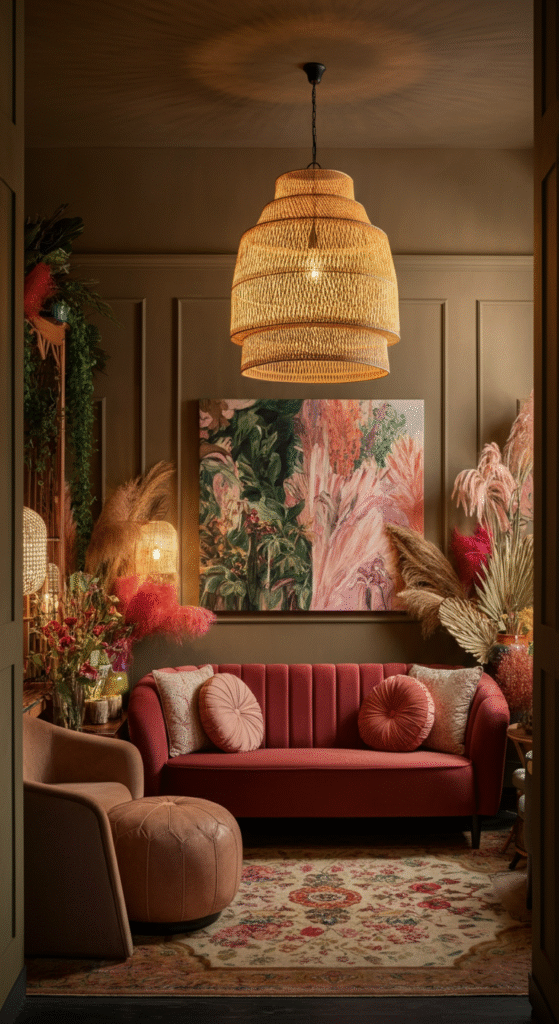 Lighting is not just for function—it’s a form of art. Choose lighting that blends seamlessly with the Boho-chic style but also makes a statement. Wicker chandeliers, lantern-style pendant lights, or a collection of Moroccan-inspired lamps can add both warmth and elegance.