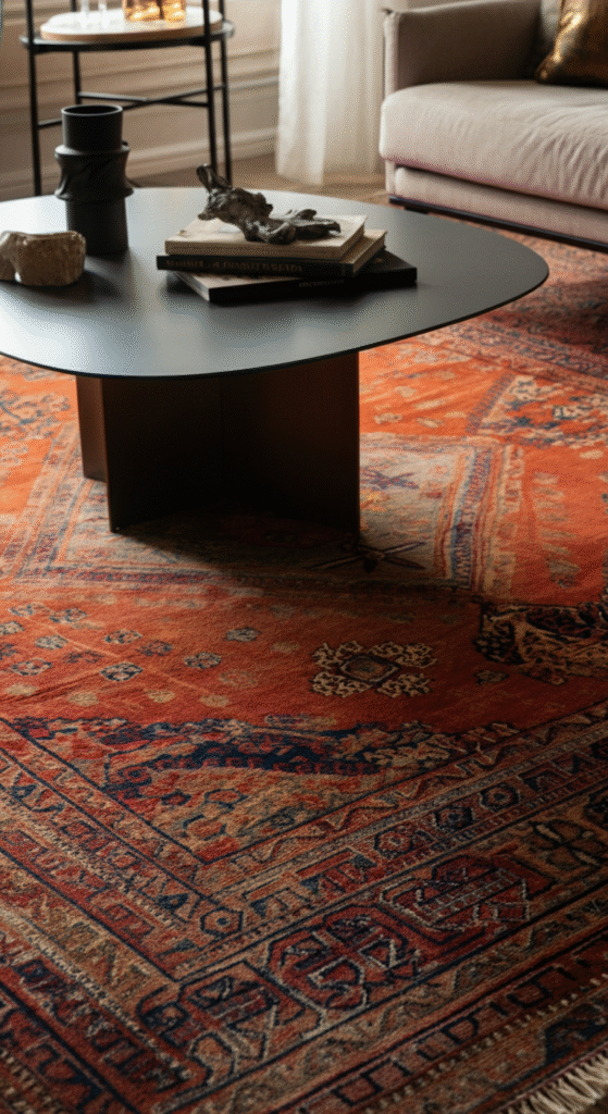 Woven textiles, especially area rugs, are a hallmark of Boho-chic living rooms. Handmade rugs with intricate patterns and bold colors can serve as statement pieces in your space. Place them under coffee tables or in conversation areas to add depth and visual interest.