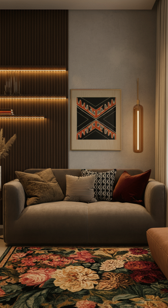 Fun fact: Mixing patterns has its roots in traditional tribal and indigenous designs, which were used to express identity and heritage. By blending these patterns into your Boho-chic living room, you’re adding both cultural richness and visual intrigue to the space.