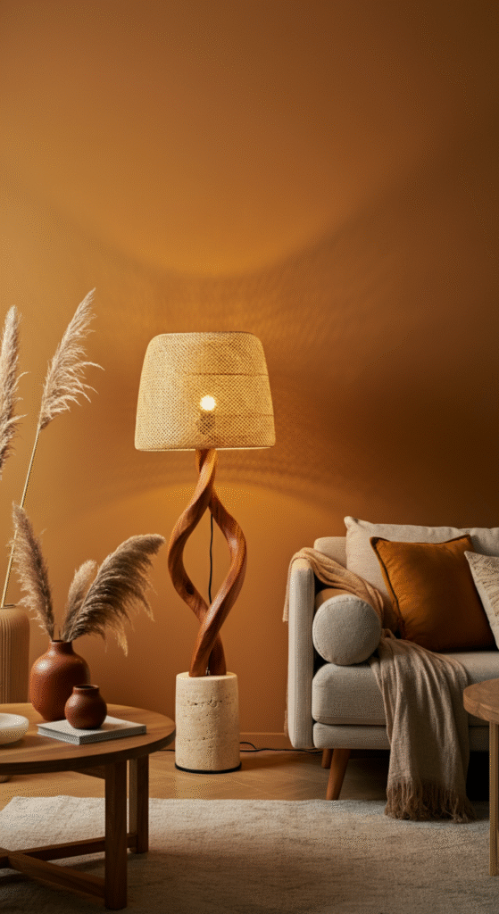 Sculptural floor lamps are a standout feature in any Boho living room. These unique, artistic lamps often incorporate natural materials like wood, stone, or metal, making them feel like both a functional light source and a work of art.