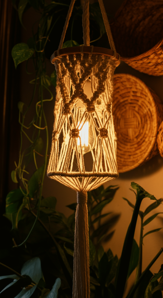 Macramé is a defining feature of Boho decor, known for its intricate knots and earthy appeal. Adding a macramé light fixture to your living room can enhance your space with a touch of texture and visual interest.