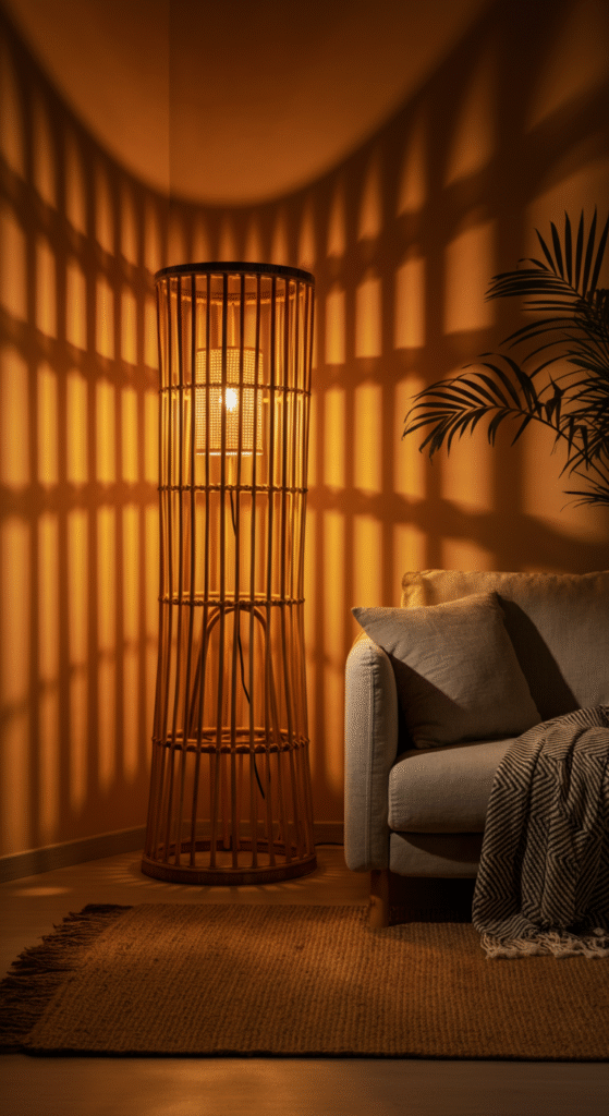 Rattan floor lamps come in various styles—from tall, sleek designs to more elaborate, sculptural pieces. Their woven textures create interesting shadows and patterns, contributing to the relaxed vibe that defines Boho interiors.