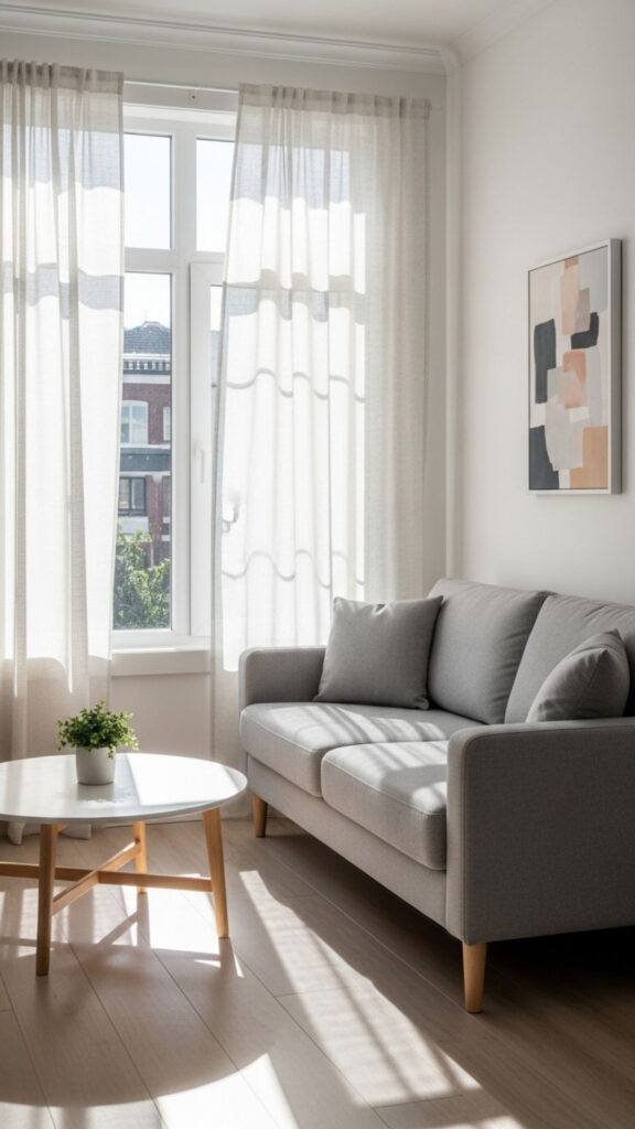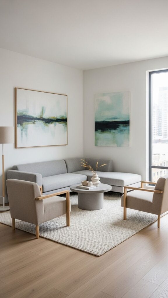 Neutral shades like whites, creams, and light grays open up the room, while soft pastels add warmth without overwhelming the space. Accent colors can be used sparingly in pillows, rugs, or artwork.
