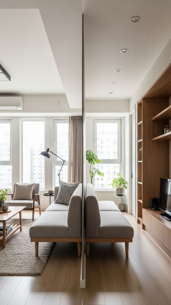 This works particularly well in studio apartments, where every square foot must be maximized.