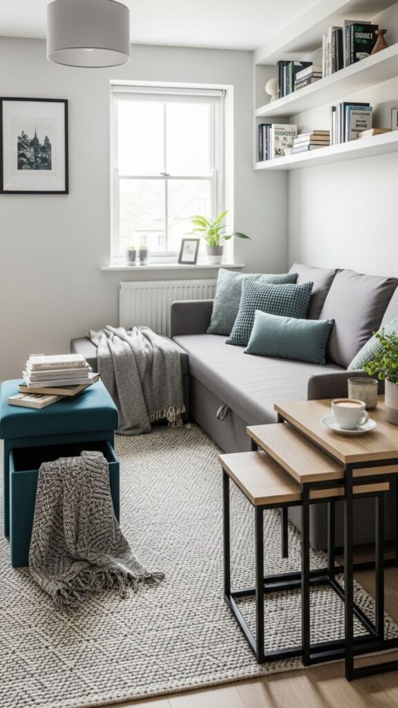 When space is tight, every piece of furniture should serve more than one purpose. A sofa bed, nesting tables, or ottomans with storage can transform your living room from a daytime lounge to an evening guest room.