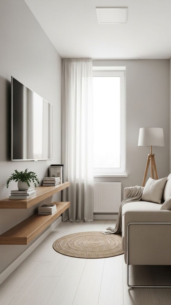 Sometimes less is more. A slim sofa, a single armchair, and a petite side table might be all you need. Instead of cramming in too much furniture, opt for fewer but multifunctional pieces arranged to leave open walking paths.