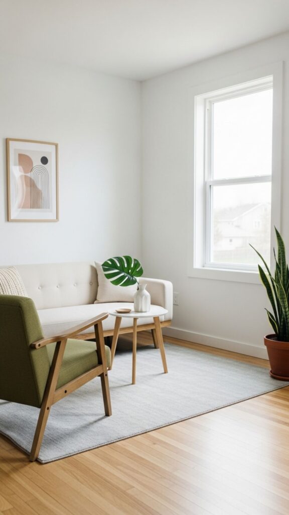 Myth buster: Many think small rooms should only have small furniture. In reality, one or two larger but streamlined pieces (like an open-back sofa) can make a space feel more cohesive than several tiny items.