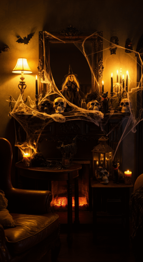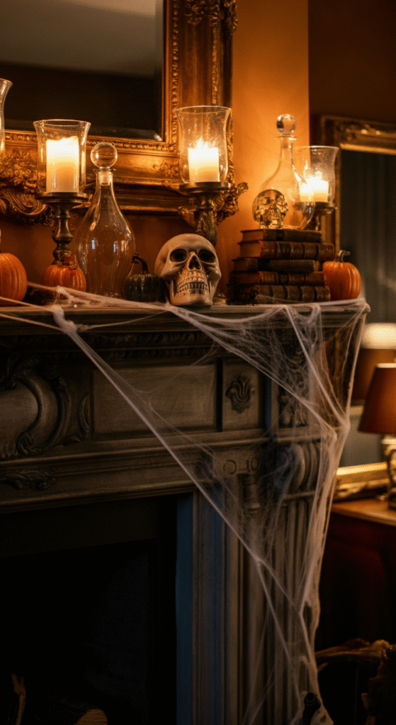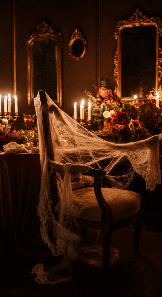 While spider webs are a Halloween classic, they don’t have to be messy or overly fake-looking. Consider using fine, white lace or fabric to create sophisticated web-like patterns that can be draped over furniture, mirrors, or even lampshades.