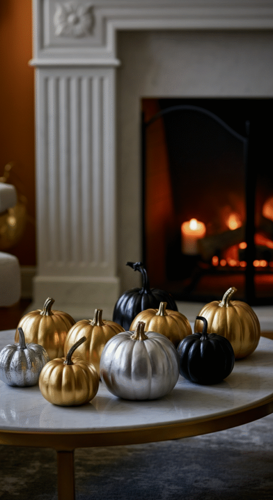 While pumpkins are undoubtedly a Halloween essential, you don’t have to carve them in the traditional way. Try painting them in metallic shades like gold, silver, or black for an elegant, polished look. Arrange these painted pumpkins in clusters on your coffee table, mantelpiece, or bookshelf to create an eye-catching display.