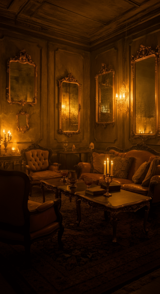 Mirrors can make your living room look bigger and brighter, but during Halloween, they can also create a haunting, otherworldly effect. Consider using vintage-style or ornate mirrors to give your room an antique, eerie vibe. Position them in dimly lit corners, or place them near flickering candlelight for added mystique.