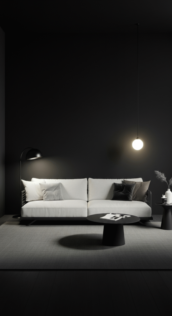 Combine neutral tones like ivory, charcoal, and gold accents. Choose statement furniture pieces: a structured sofa, marble table, or chandelier-style light.