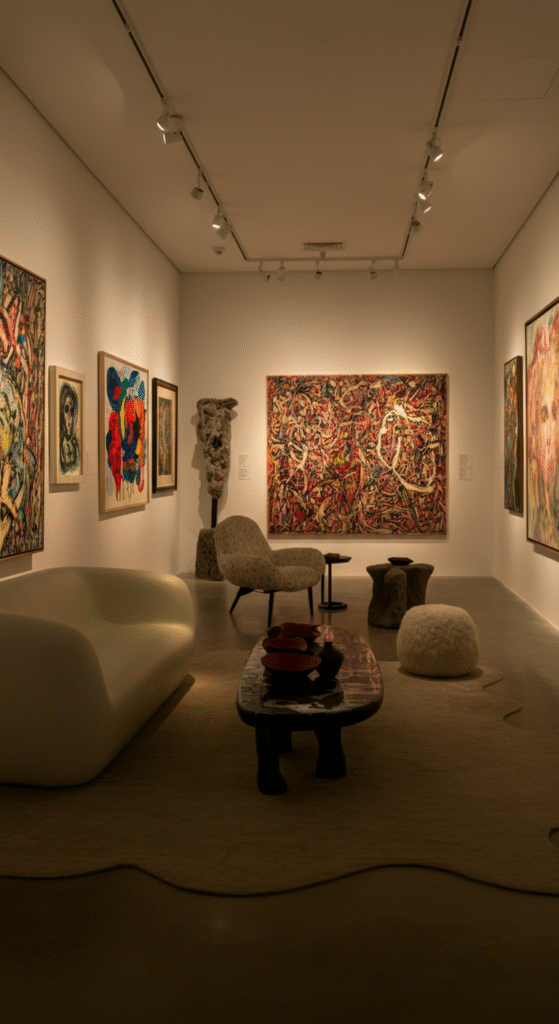 Add sculptural furniture to emphasize form and creativity—your living room becomes an evolving masterpiece.