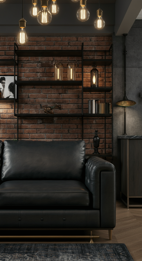 Stick to a palette of grays, blacks, and browns. Use brick walls, steel shelves, and leather furniture. Add statement lighting—like Edison bulbs or hanging fixtures—to complete the look.