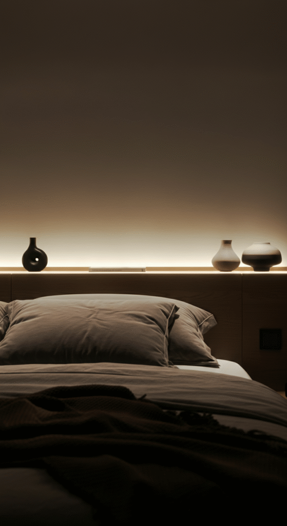 If you’re open to a small renovation, a recessed wall niche can replace a headboard beautifully. It creates depth and subtle drama.