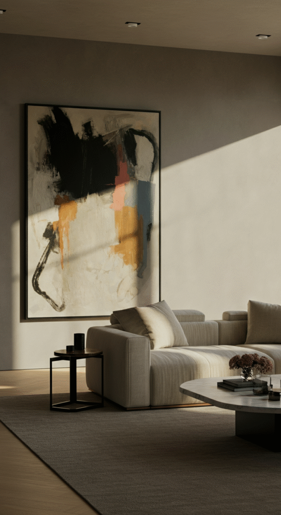 There’s something undeniably captivating about a large-scale abstract painting. It anchors the room and sets the tone for your entire design.