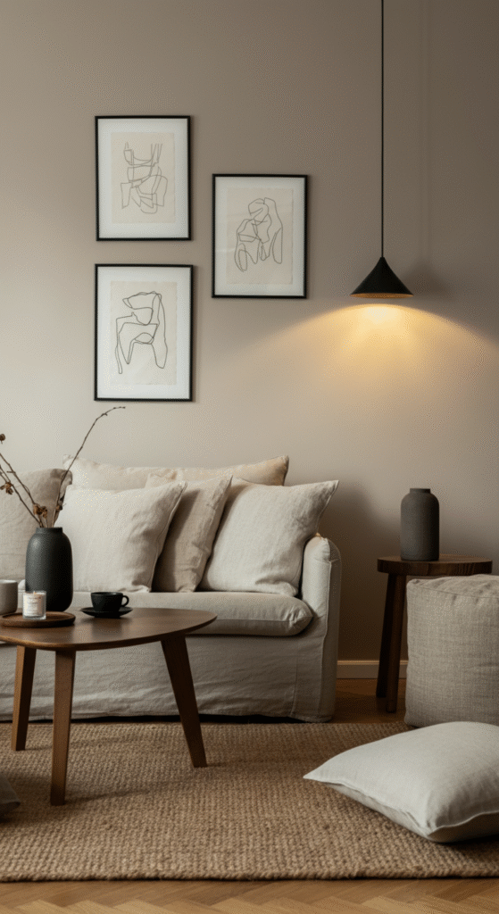 Line art—whether printed or hand-drawn—embodies the elegance of simplicity. It’s perfect for those who love understated sophistication and Scandinavian-style décor.