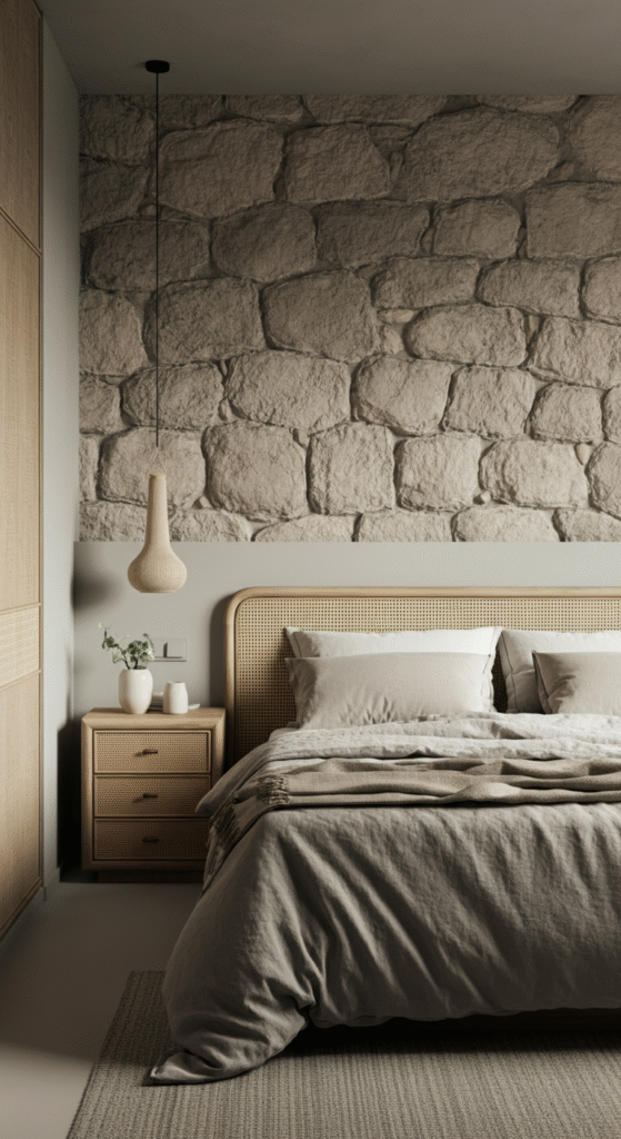 If you’re looking to add a touch of rugged elegance to your rustic bedroom, consider incorporating natural stone. A stone accent wall behind your bed or a stone-framed mirror can elevate the rustic charm of your space. It adds texture and creates a grounded, earthy feel to your bedroom.