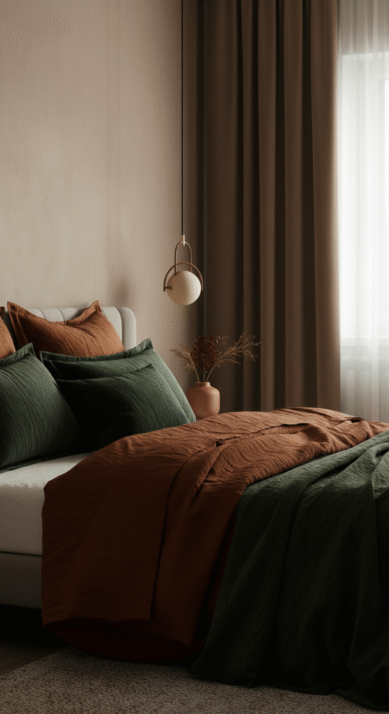 For the ultimate rustic vibe, choose earthy tones like browns, grays, and muted greens. These colors complement wood accents and make your bedroom feel connected to the outdoors. Paint your walls in soft shades of beige or taupe, and add pops of deep green or rust in your bed linens or throw pillows.