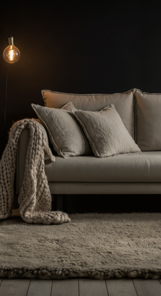 Add cozy elements like textured throws, soft pillows, and plush rugs. Layering natural materials, like wool or linen, will enhance the warm, comfortable feel of your space.