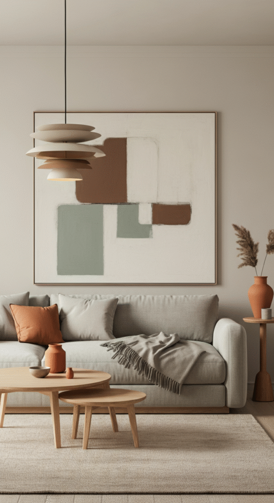 While the color scheme remains neutral, Scandinavian interiors often incorporate bold art pieces and statement accessories to inject personality into the space. Choose one or two statement pieces, such as a large abstract painting or a sculptural light fixture, to draw the eye and create visual interest.