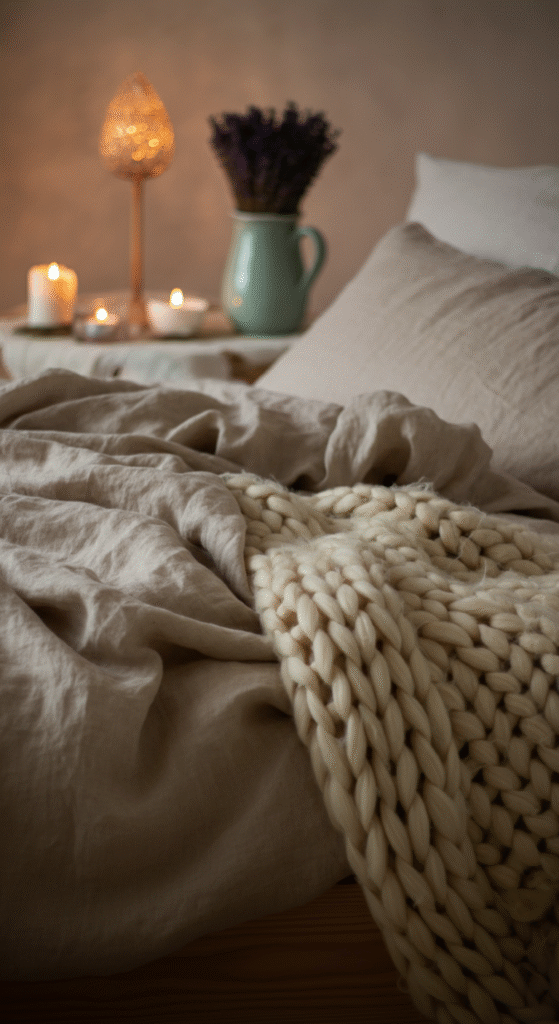 In Scandinavian design, texture is key. Add cozy, natural textiles such as linen, cotton, or wool throws over your bed or a chair to make the space feel even more inviting. Choose soft neutrals or muted tones to keep the aesthetic consistent.