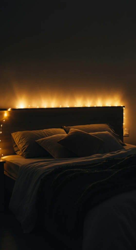 These lights can be draped around the headboard, placed across the ceiling, or hung delicately along the walls. Choose warm white lights to add a soft glow, which creates a welcoming and intimate atmosphere.