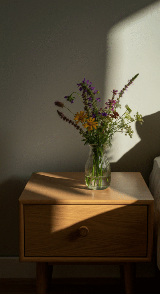Fresh flowers are a beautiful and natural addition to any Scandinavian bedroom. Wildflowers, in particular, fit well with this aesthetic and can be arranged in simple glass vases or mason jars for a rustic look.