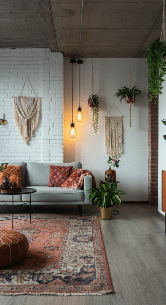 Incorporating a mix of colorful textiles, vintage furniture, and lush plants creates a cozy, lived-in feel. It’s the perfect balance between Scandinavian minimalism and the playful energy of boho chic.