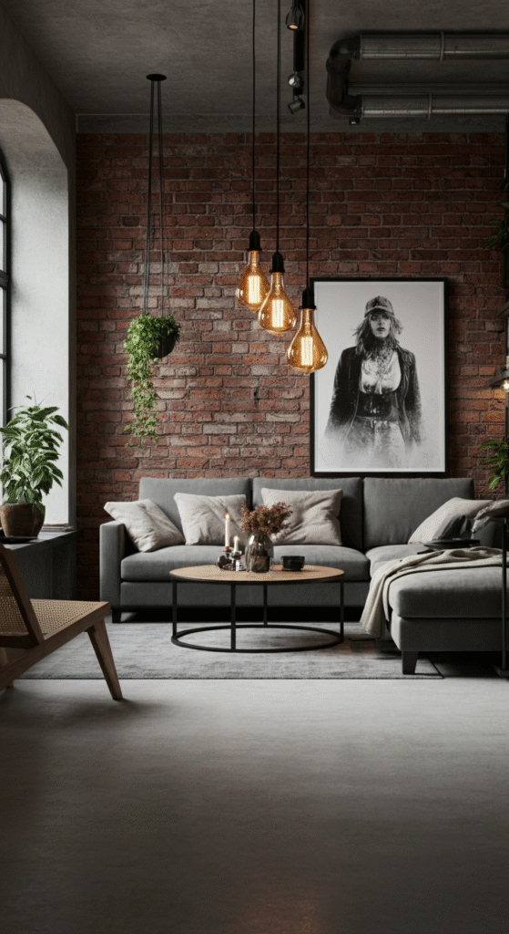 The contrast between industrial and soft elements creates a dynamic look, giving the room an edgier, more urban feel. A few well-chosen metal or glass pieces, such as light fixtures or furniture frames, add a touch of modern industrial style without overshadowing the warmth of the space.
