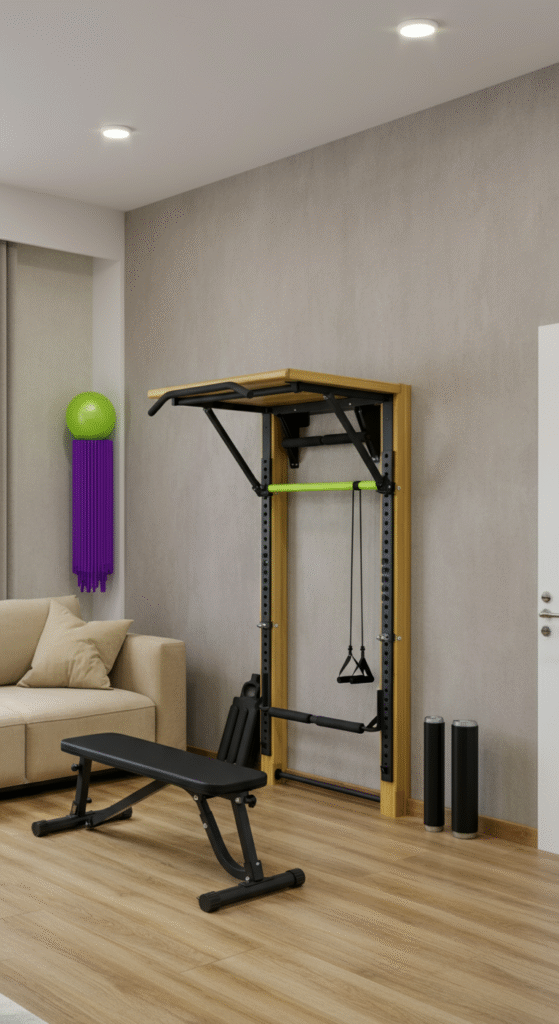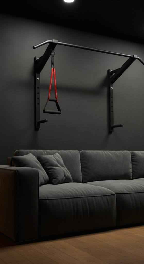 For strength training enthusiasts, a wall-mounted pull-up bar is a perfect addition to your living room gym. It doesn’t take up floor space, and you can use it for a variety of exercises like pull-ups, chin-ups, and even hanging leg raises.