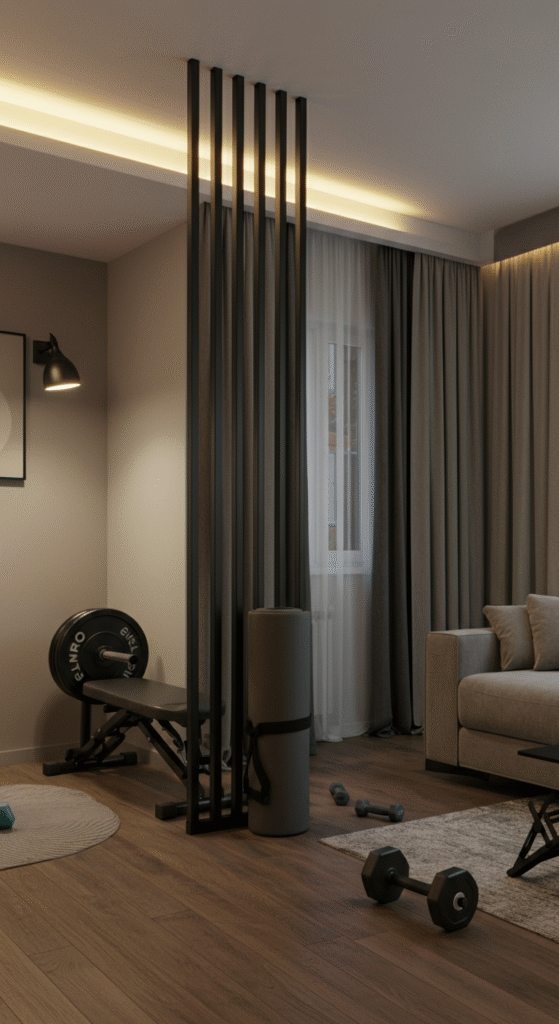 Interesting Fact: Using curtains or partitions for home gyms is a common practice in many urban apartments where space is at a premium. Not only does it help separate your workout area, but it can also create an intimate space that’s perfect for focusing on fitness.